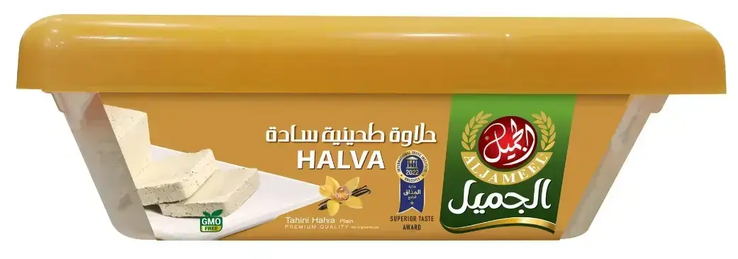 Al Jameel Finest Plain Halva 500g is a delicious sesame sweet with a smooth, melt-in-the-mouth texture. A perfect balance of nutty richness and sweetness, making it an ideal treat for any occasion.