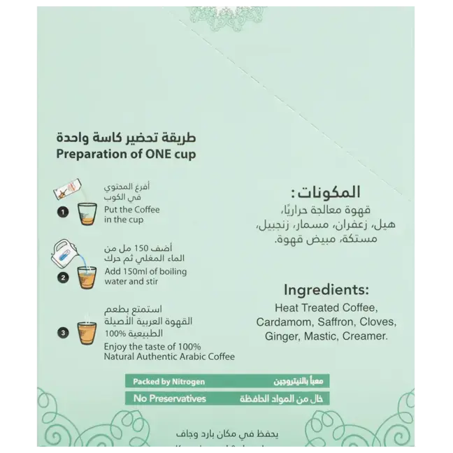Al Mosafer Instant Arabic Coffee With Cardamom 12*5g