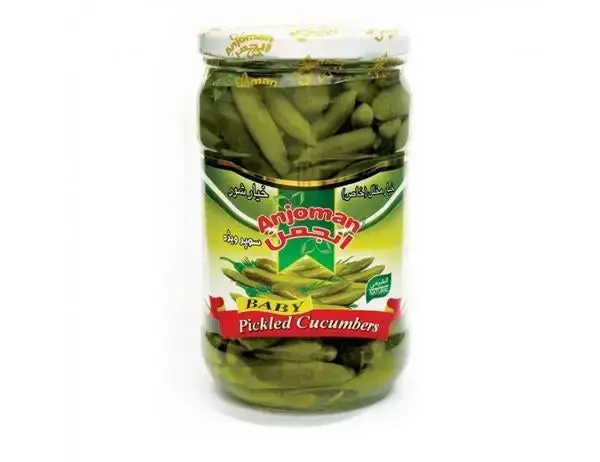 Anjoman Baby Pickled Cucumber 700g , small pickled cucumbers with a tangy and crunchy flavor, perfect addition to dishes and appetizers