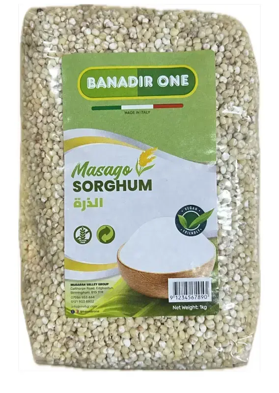 Banadir One Whole Sorghum 1 kg — Nutritious whole sorghum grains, meticulously cleaned and packaged in a 1 kg pack. With its mildly nutty flavour and hearty texture, this versatile grain is perfect for porridges, stews, salads, and gluten-free baking.