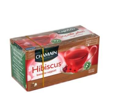 Chamain Rose and Hibiscus Tea (20 Bags) combines the floral aroma of roses with the tangy taste of hibiscus for a soothing and refreshing herbal infusion.