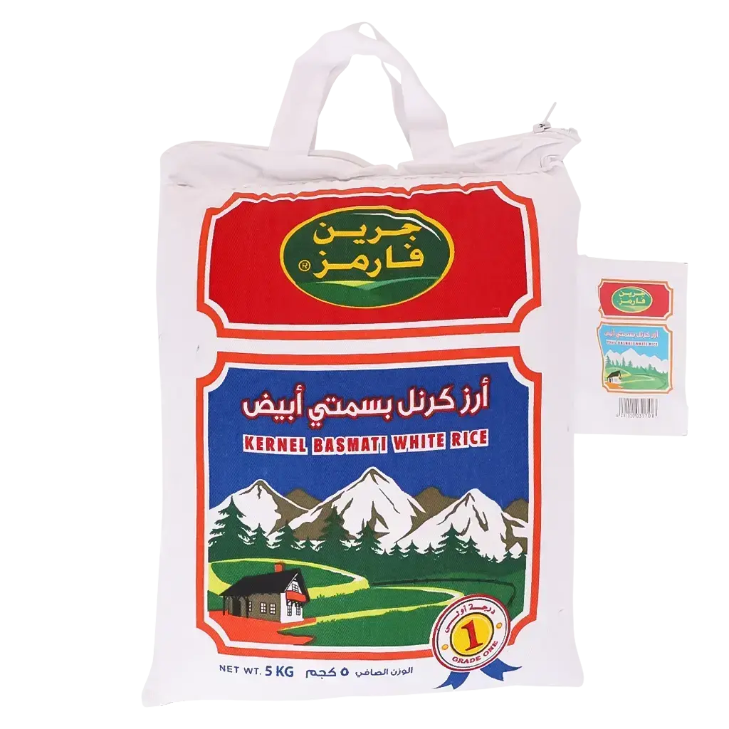 Green Farms Pakistani Kernel Basmati Rice 5kg is a premium-quality, long-grain basmati rice sourced from Pakistan, known for its rich aroma, delicate flavor, and fluffy, non-sticky texture. Perfectly aged to enhance its natural taste, this rice is a versatile choice for daily cooking and special occasions alike.