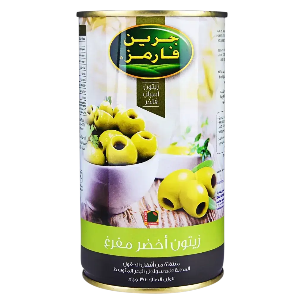 Green Farms Spanish Pitted Green Olives Tins 350g bring you the finest hand-picked Spanish olives, carefully pitted for convenience and sealed to preserve their natural flavor and freshness. With their firm texture and mild, tangy taste, these olives are perfect for both snacking and cooking.