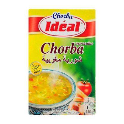 Ideal Moroccan Chorba 110g ، is a complete blend for making traditional Moroccan soup, combining fine durum wheat pasta, dried vegetables, and authentic Moroccan spices like turmeric, pepper, and cardamom. Easy and quick to prepare
