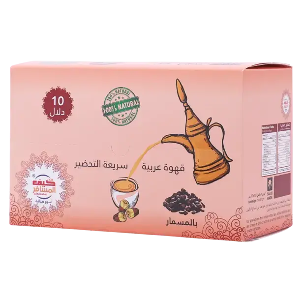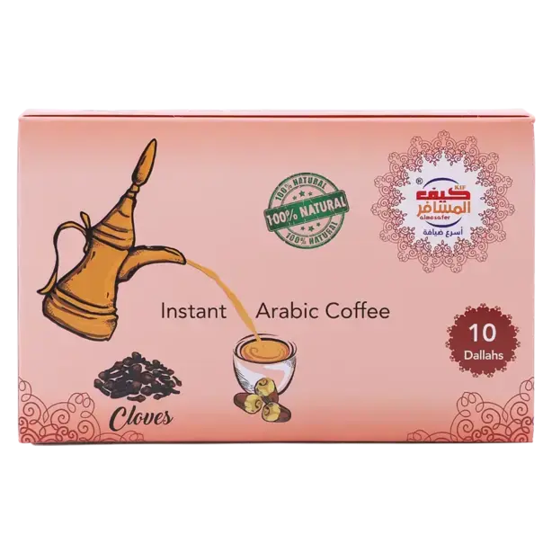 Kif Almosafer Instant Arabic Coffee with Cloves brings aromatic warmth to your cup without the wait. This 10-sachet box (30g each) combines quality instant coffee with the distinctive, warming spice of cloves for a flavor that's both comforting and energizing.