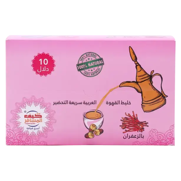 Luxury meets convenience with Kif Almosafer Instant Arabic Coffee with Saffron. This 10-sachet box (30g each) elevates instant coffee to something genuinely special by incorporating one of the world's most precious spices.