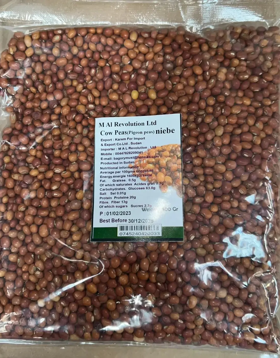 Pigeon Peas 500g (Revolution Cow Peas) are nutritious legumes rich in protein, fiber, and essential minerals. Popular in African, Caribbean, and Asian cuisines, they are perfect for preparing soups, stews, curries, and traditional dishes. Packed in a 500g bag, these pigeon peas are a healthy and versatile ingredient for everyday cooking.