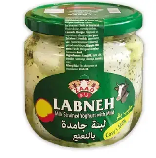 Smooth and tangy Zaad Labneh with mint, made from cow’s milk. A refreshing spread or dip that pairs perfectly with bread, vegetables, or wraps.